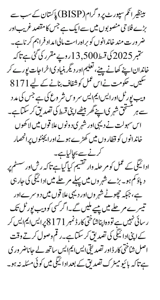 In 2026, the system was upgraded to improve accessibility for mobile users, add stronger verification methods, and offer real-time payment tracking. This means families can confirm their installment without leaving their homes. For rural areas, where internet access may be limited, the government has also kept the SMS option active so that no eligible household is left behind.
