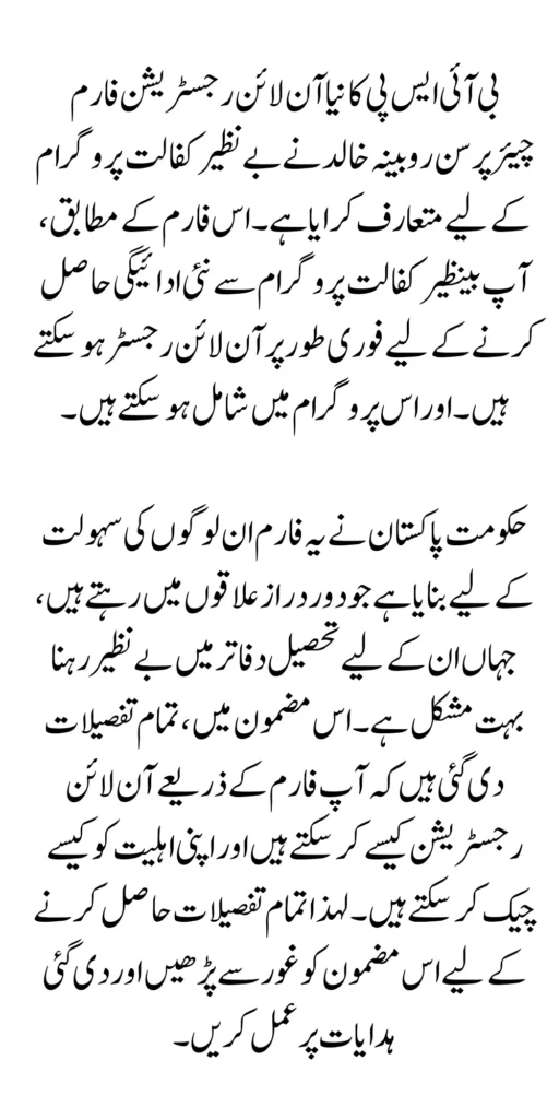 BISP Chairperson There is a new update from BISP that the BISP’s new chairperson Dina Khalid has shared an important update regarding the pre-registration of the Rubina Khalid program. New Payment Confirm Eligibility Instantly Those who are receiving payments can verify information through their surveys that they can receive money. So before getting the money they have to verify the eligibility criteria i. e. they have to check all their information about the Benazir income support program, especially from the program office. After that they will not face any problems in getting money and they can easily get their money at home.