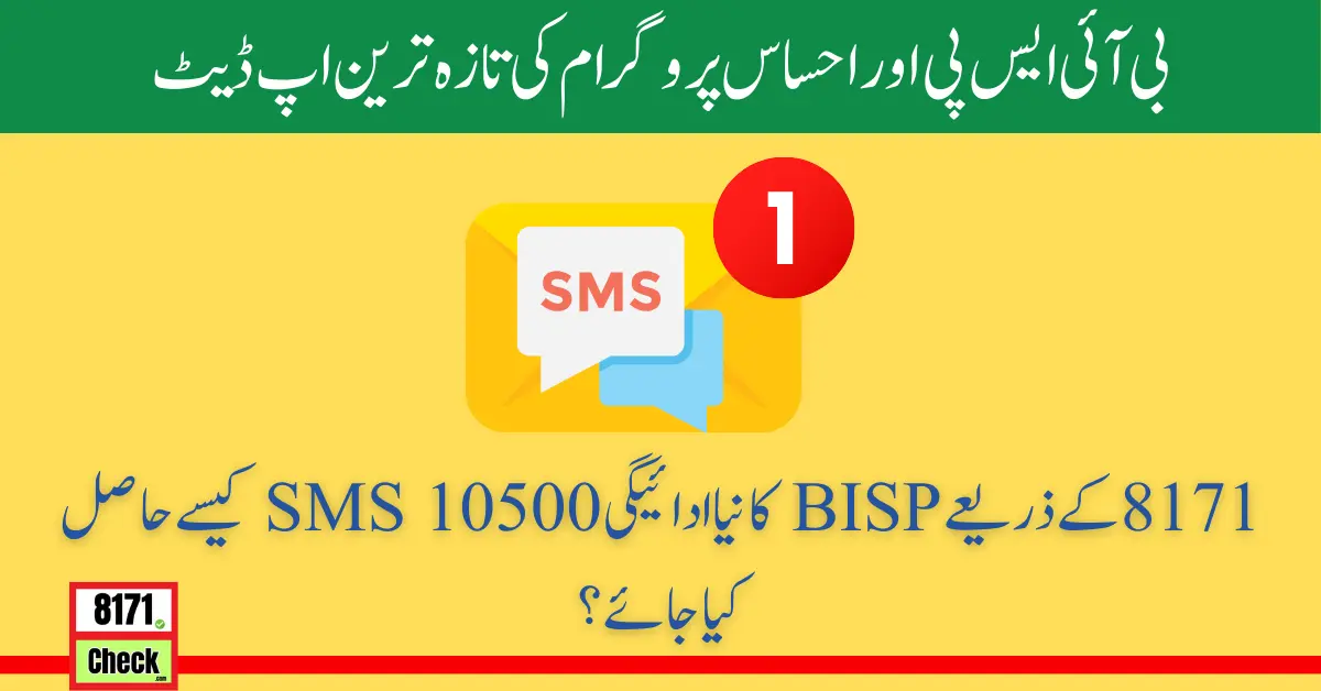 BISP New Payment SMS 10500 Go to your nearest BISP tehsil office and get register yourself in 8171 program. If you are already register in this program, you will be given an amount of 10500 rupees through this program launched by the government of Pakistan, so make sure you register in this program and also by the government of Pakistan.