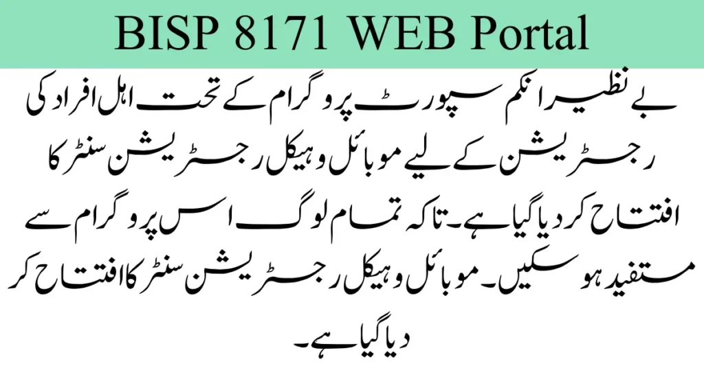 BISP Registration Through Mobile Vehicle Easy Method A mobile vehicle registration centre has been Inaugurated for the registration of eligible people under the Benazir Income Support Program. So that all people can benefit from this program. Mobile Vehicle Registration Center has been inaugurated.