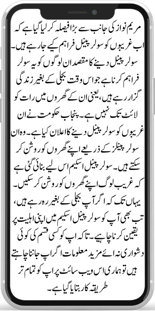 A big decision has been taken by Maryam Nawaz that Soler Panal Scheme are now being provided to poor people. The purpose of giving solar panels is to those people who are currently living without electricity, i.e. they do not even have light in their houses at night. Punjab government has announced to give solar panels to these poor people.