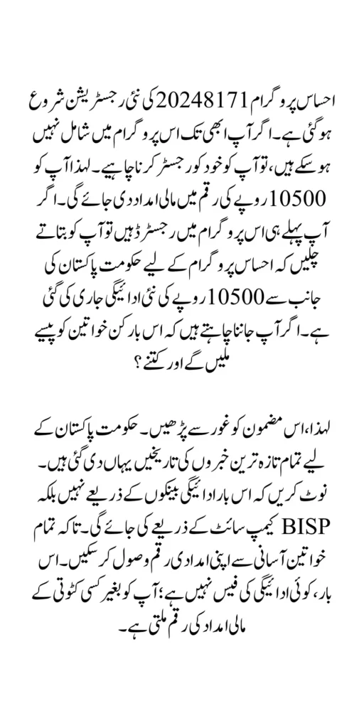 You Can Also Read: Eligible Women In BISP Program 10500+ 4500
