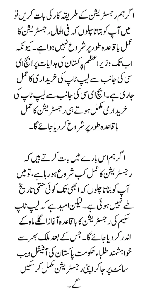 If you have not yet confirmed your registration in this program, we will tell you about the registration process here. The government of Pakistan has not started the registration process. But on the instructions of the Prime Minister of Pakistan, the process of purchase of laptops by HEC is going on If we talk about when the registration starts, let’s talk about it