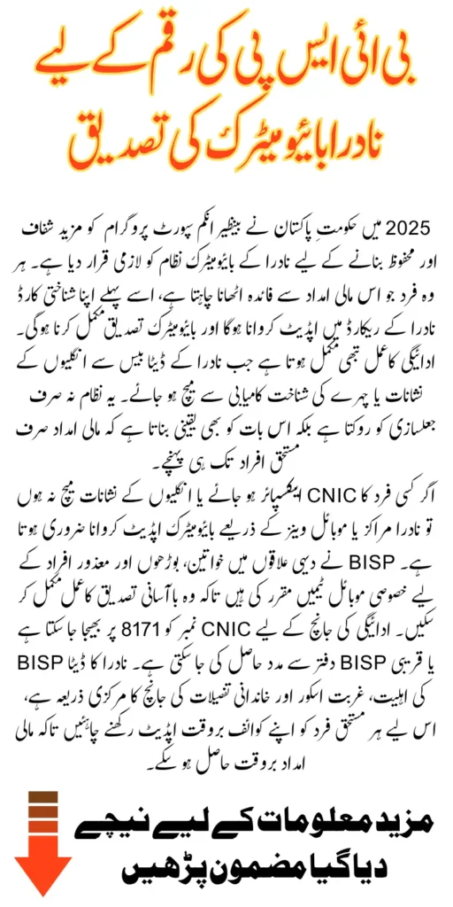 - Without a valid CNIC and biometric match, payment cannot be processed under BISP