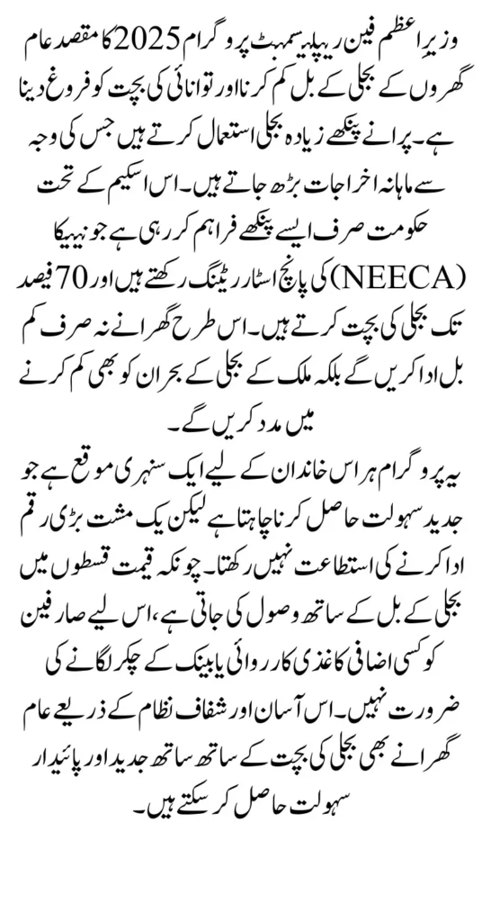 What makes this initiative highly practical is its on-bill repayment model. Instead of forcing families to pay a heavy cost upfront, the program allows the price to be divided into easy installments. These installments are automatically added to the applicant’s electricity bill, ensuring transparency and convenience. This way, homeowners can modernize their homes without worrying about immediate financial stress while also contributing to the government’s larger goal of saving nearly 5,000 MW of electricity nationwide.
